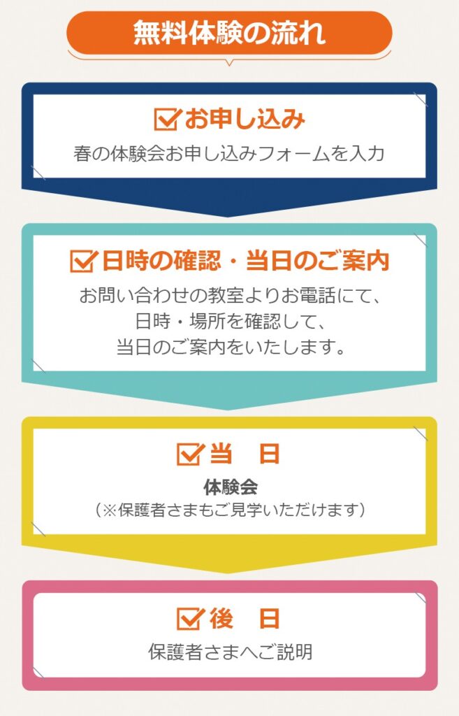 ※他日程で体験をご希望の場合は、お問い合わせください。