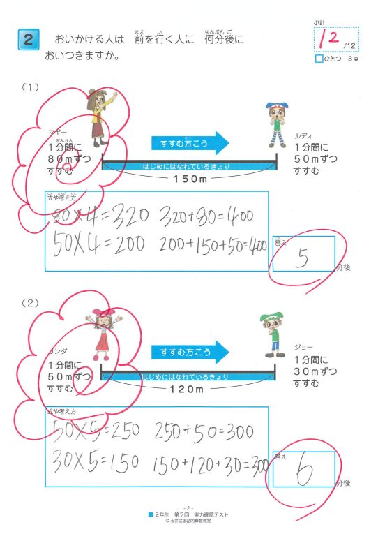 旅人算は小学5年生で習うものですが、実際に解いた生徒は小学校2年生。