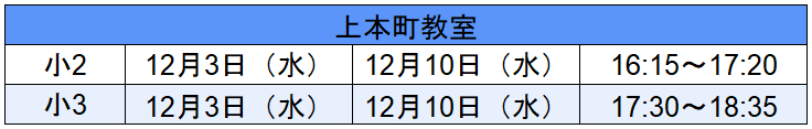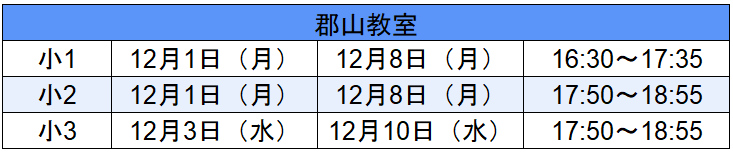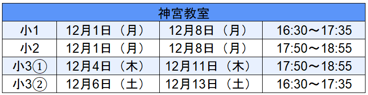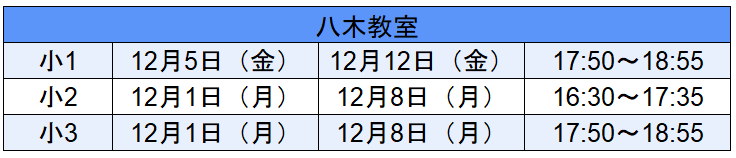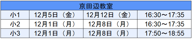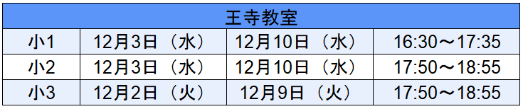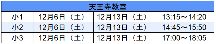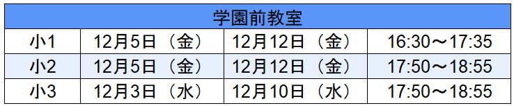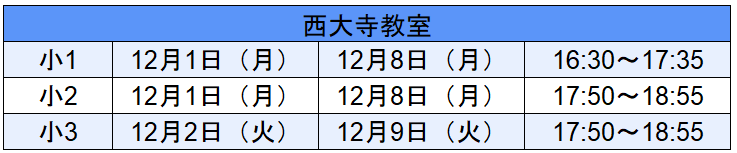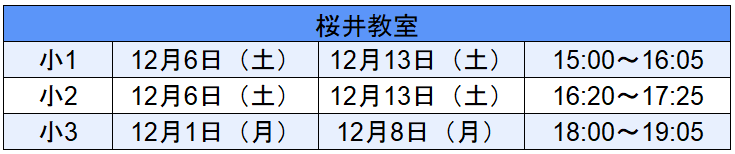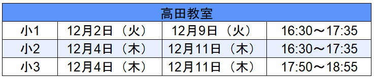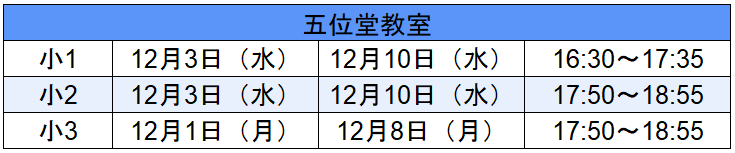 ※各教室複数クラスがあるため、詳細日程は教室にお問い合わせください。