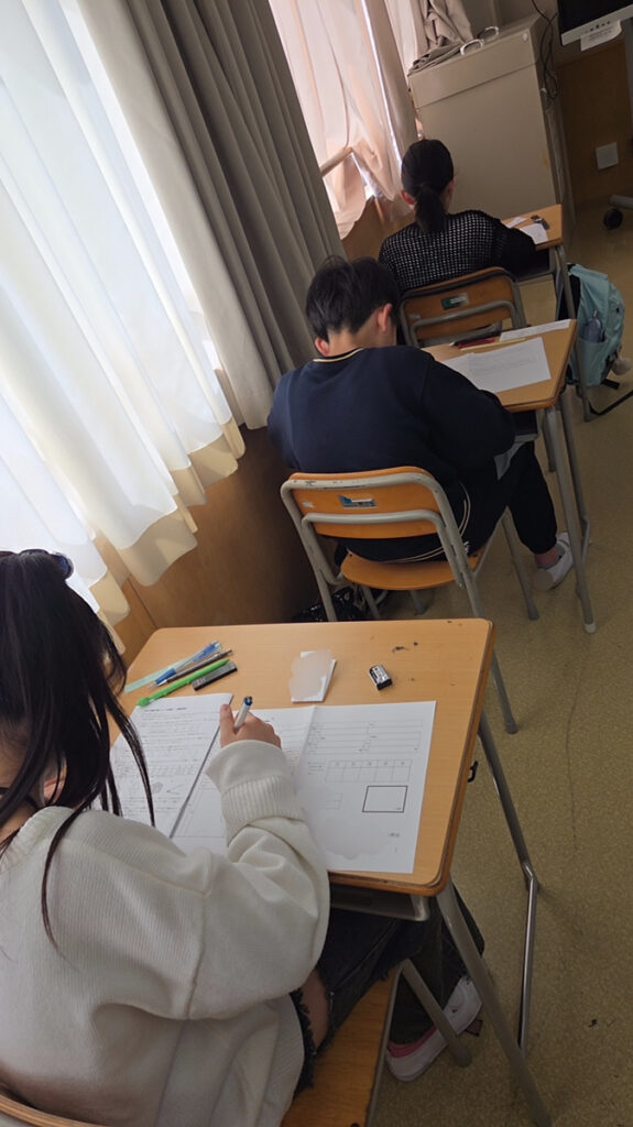会場の緊張感ある空気に触れた瞬間生徒たちの表情は真剣そのもの。まさに「戦う受験生」の顔つきでした。