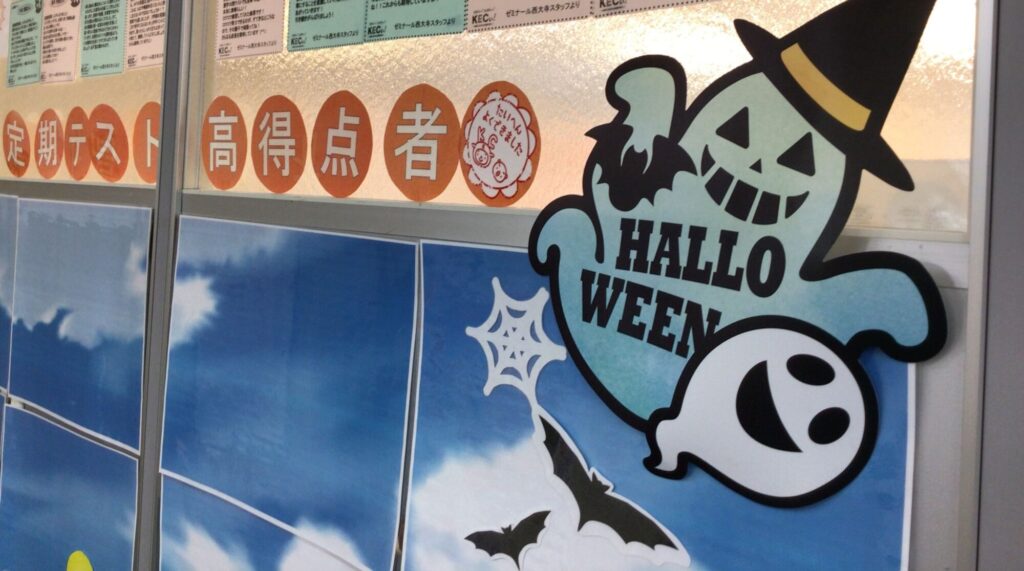 頑張りをたたえる掲示物もこれからズラリと生徒のお名前が並びます。ハロウィン仕様も映えますね!