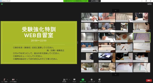 本日も20:00~22:00の間はzoomを使って、web自習室に参加してくれました!
