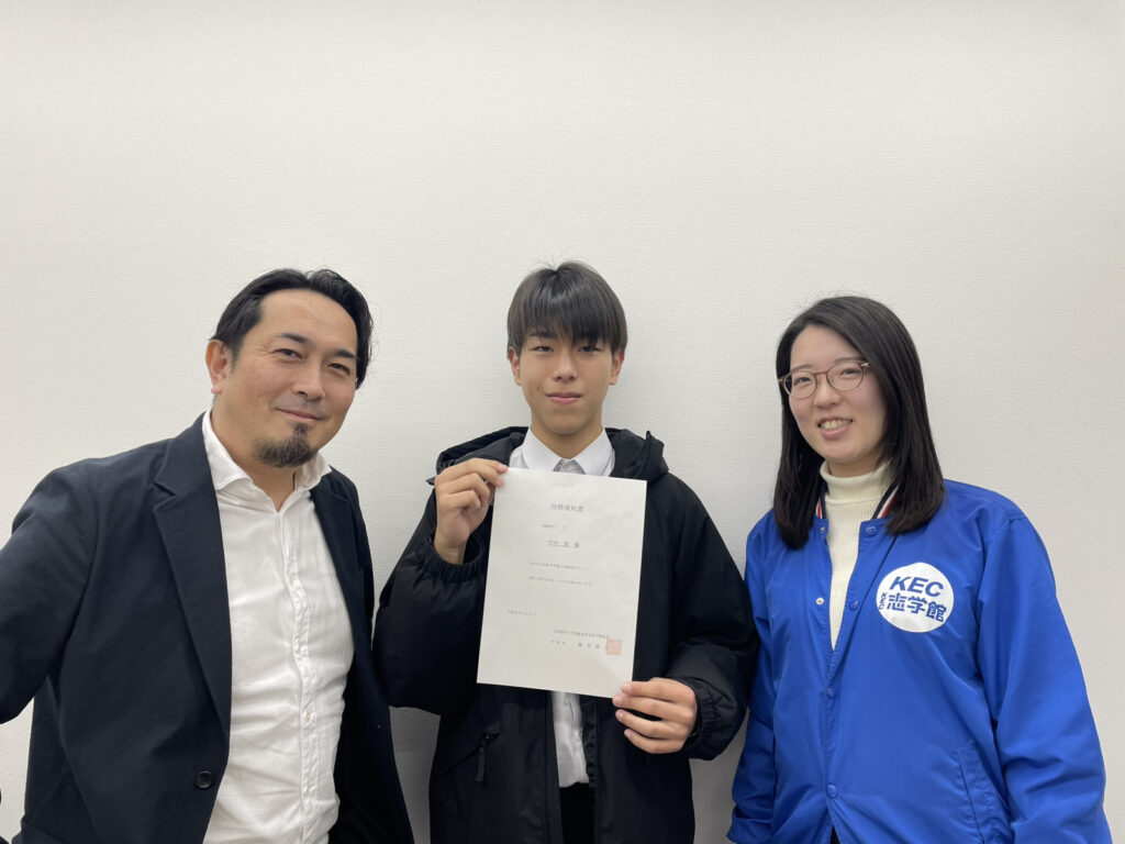 KECゼミナールは、生徒の人生の選択肢を広げてくれるとっても良い塾だと心の奥底から思う。先生に言われた課題をやる、また、先生からいただいたアドバイスを受け入れる、それだけで成績が伸びるなんて思ってもいなかった。人間性についても指導してもらい、自分の性格面まで面倒を見てくれる先生がいる塾があるなんて思いもしなかった。受験への意識が高まったのも先生のおかげです。合格できたのも先生のおかげです。人との付き合い方が上手になったのも先生のおかげです。お世話になった先生方、応援してくれている家族に感謝しかないです。KECに入塾して本当によかったです。受験生活にも悔いは残っていないです。自分のやるべきことをやり切ったからね。悔いなく受験勉強するならKECゼミナールだと確信をもって言えるくらい愛しています!!