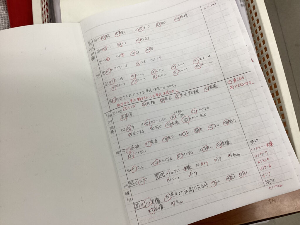 このノートは、学習の記録であると同時に、自分自身と向き合った思考の軌跡です。受け身で授業を聞くだけでなく、主体的に自分の課題を発見し、解決していく。この「自学自習」の姿勢こそ、定期テストの点数アップはもちろん、高校入試やその先の学びにおいても不可欠な力です。