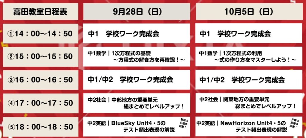 また、定期テスト・単元テスト対策の講座をピンポイントに選んで受講いただける「セレクト講座」もテスト前の期間限定で実施しております!ご興味のある方は、お気軽に教室までご連絡ください★