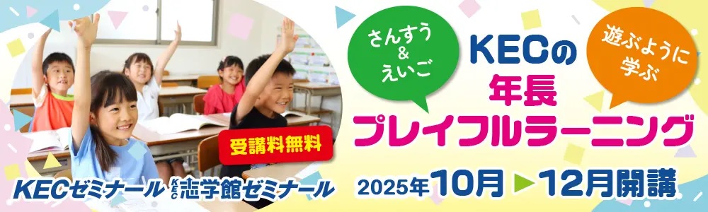 KECの「年長プレイフルラーニング」では、小学生体験を通して「学校が楽しみだな、早く勉強したいな」と思ってもらえる遊びの要素を入れた学びをご用意しています。