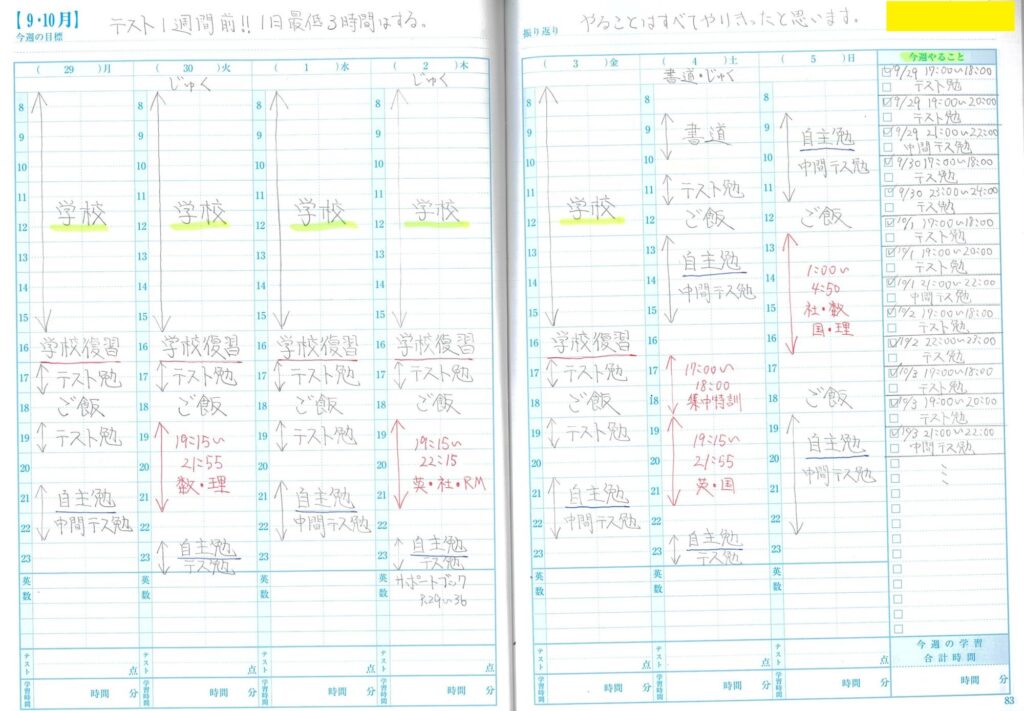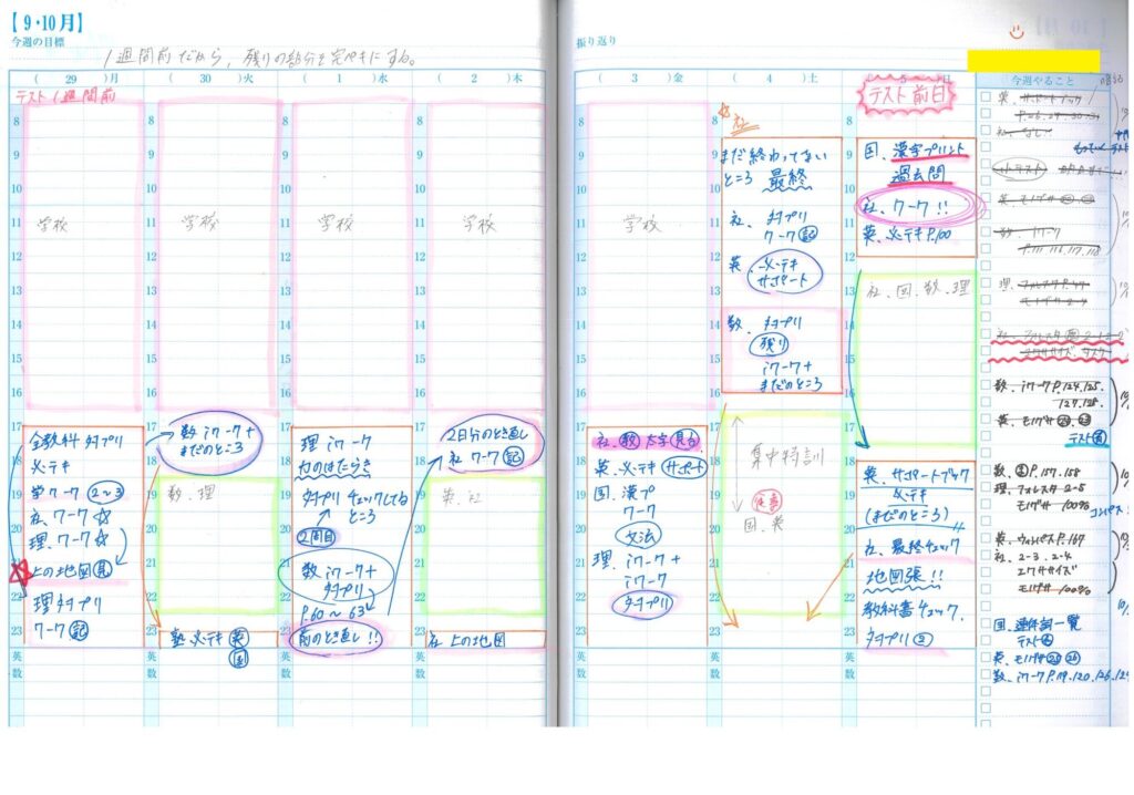 高得点を取る生徒の多くが、テスト前に「週間RM(ロードマップ)」というKECオリジナルの学習計画シートを、ぎっしりと埋めています。