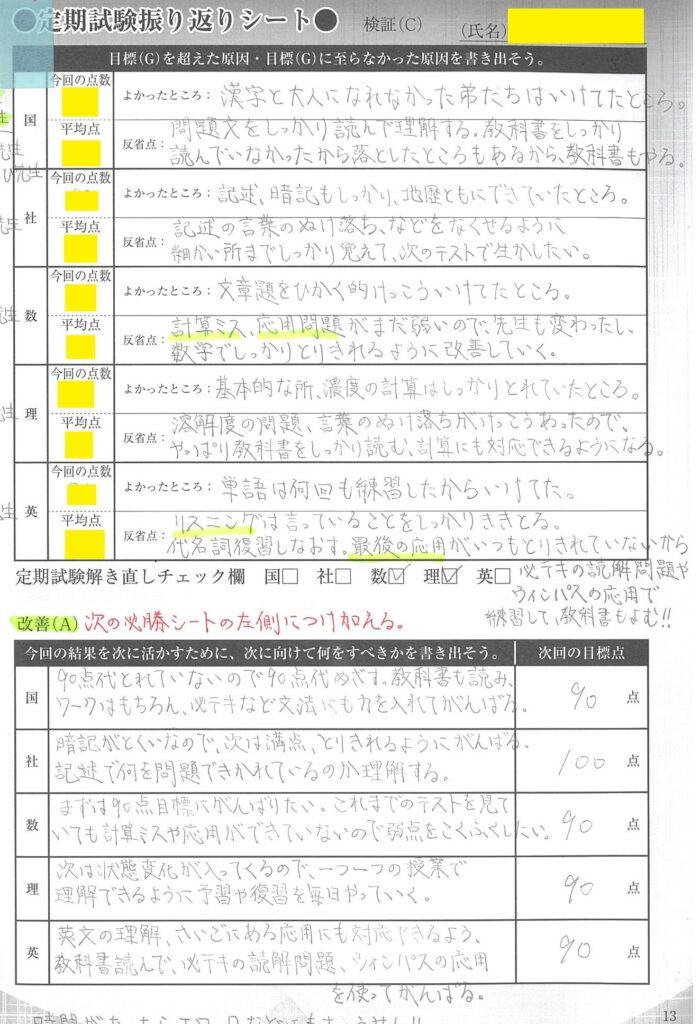 どうでしょう?ただ「悔しい」「嬉しい」で終わらせるのではなく、原因と次への対策を自分の言葉で書くことで、できなかった問題は「次こそできる問題」に、できた問題は「自信」に変わっていきます。