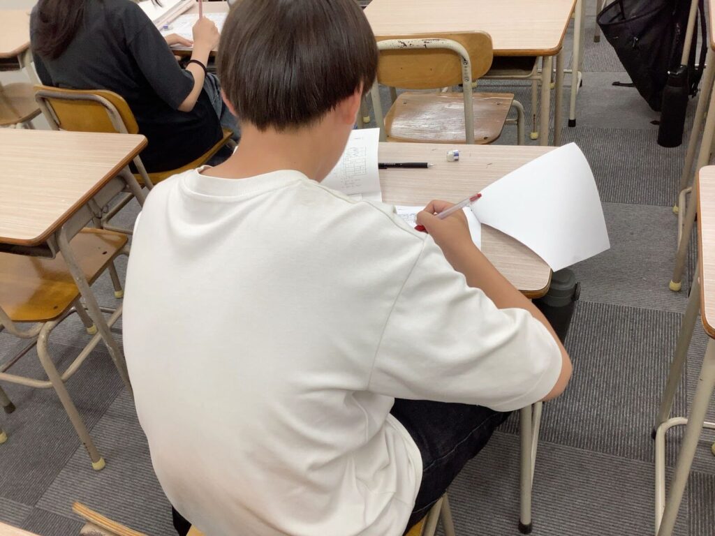 中学3年生は「志望校別特訓」がスタートしました。志望校ごとに会場を分け、本番さながらの演習と解説を繰り返し行うことで、実践力を高めていきます。目標が同じ仲間と切磋琢磨する姿はとても頼もしく、教室全体に受験モードの空気が広がっています。