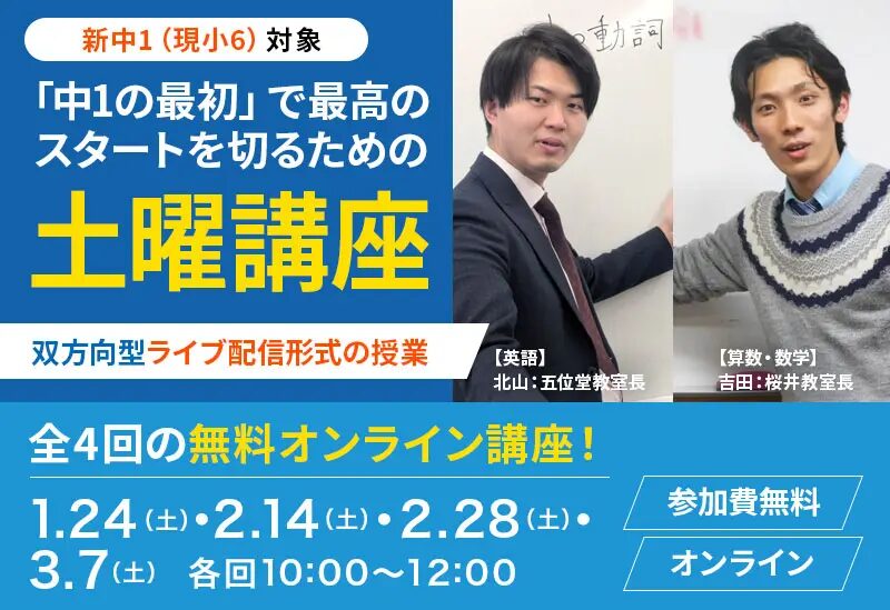 さらに、KECでは今年から、新中1生向けの無料 オンライン土曜講座もスタートします!