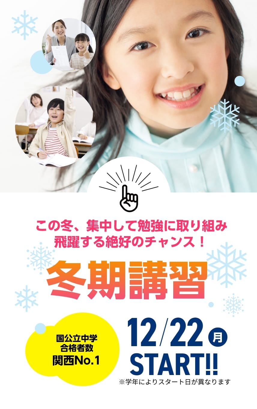 冬期講習では、直前に迫る国公立中学と私立中学の入試に対応すべく、過去の問題演習を中心に実践の力を養います。