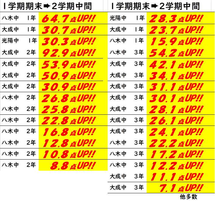 次回、期末テストで点数を上げたい方は、ぜひ当塾の定期テスト対策にお越しください!